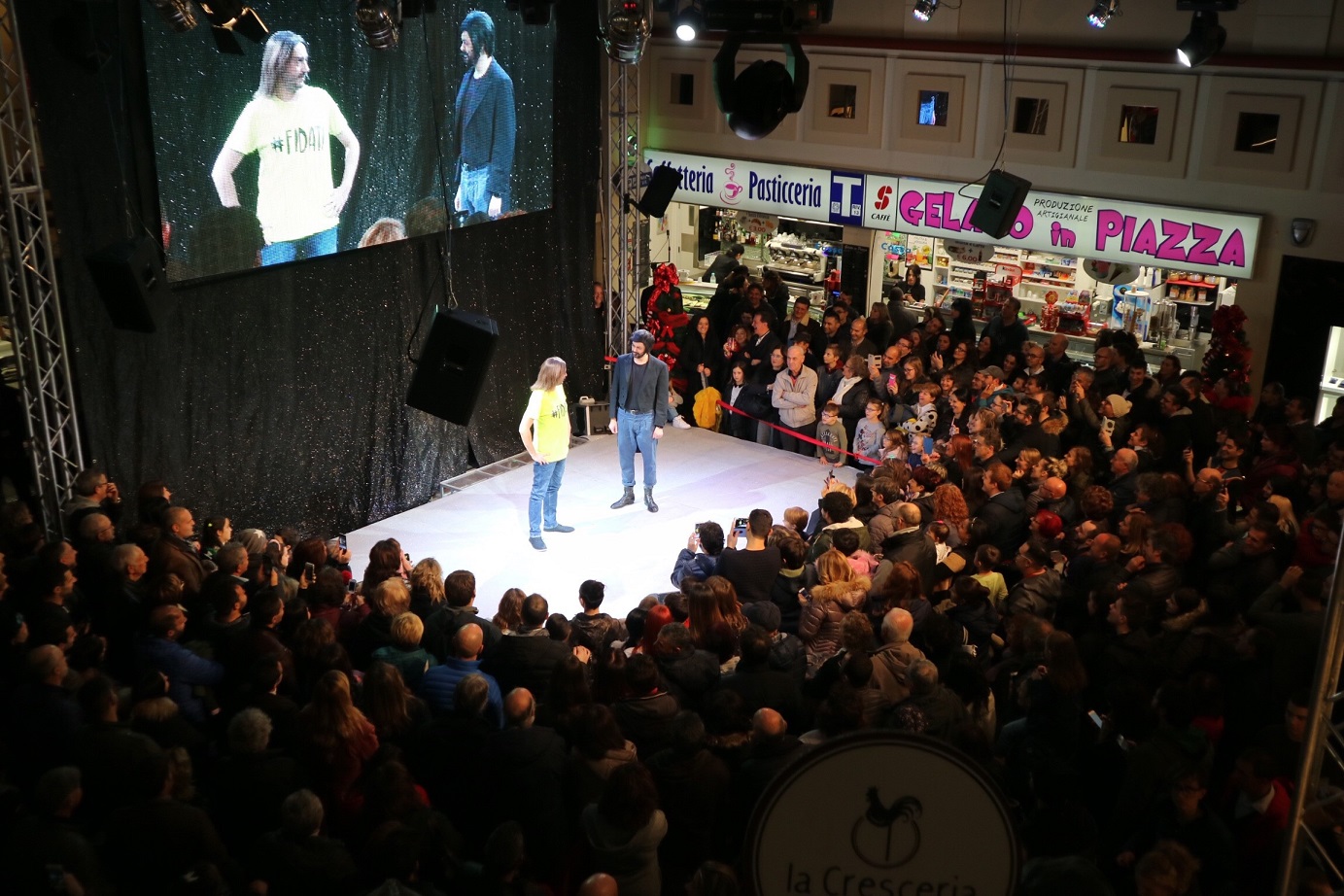 TREVI (Perugia) – Applausi e tante risate a PiazzaUmbra, il centro commerciale di Trevi che, per celebrare i suoi primi 17 anni di attività, domenica 26 novembre ha visto protagonisti sul palco i comici sardi Michele e Stefano Manca, noti al grande pubblico come “Pino e gli anticorpi”, ma non solo.