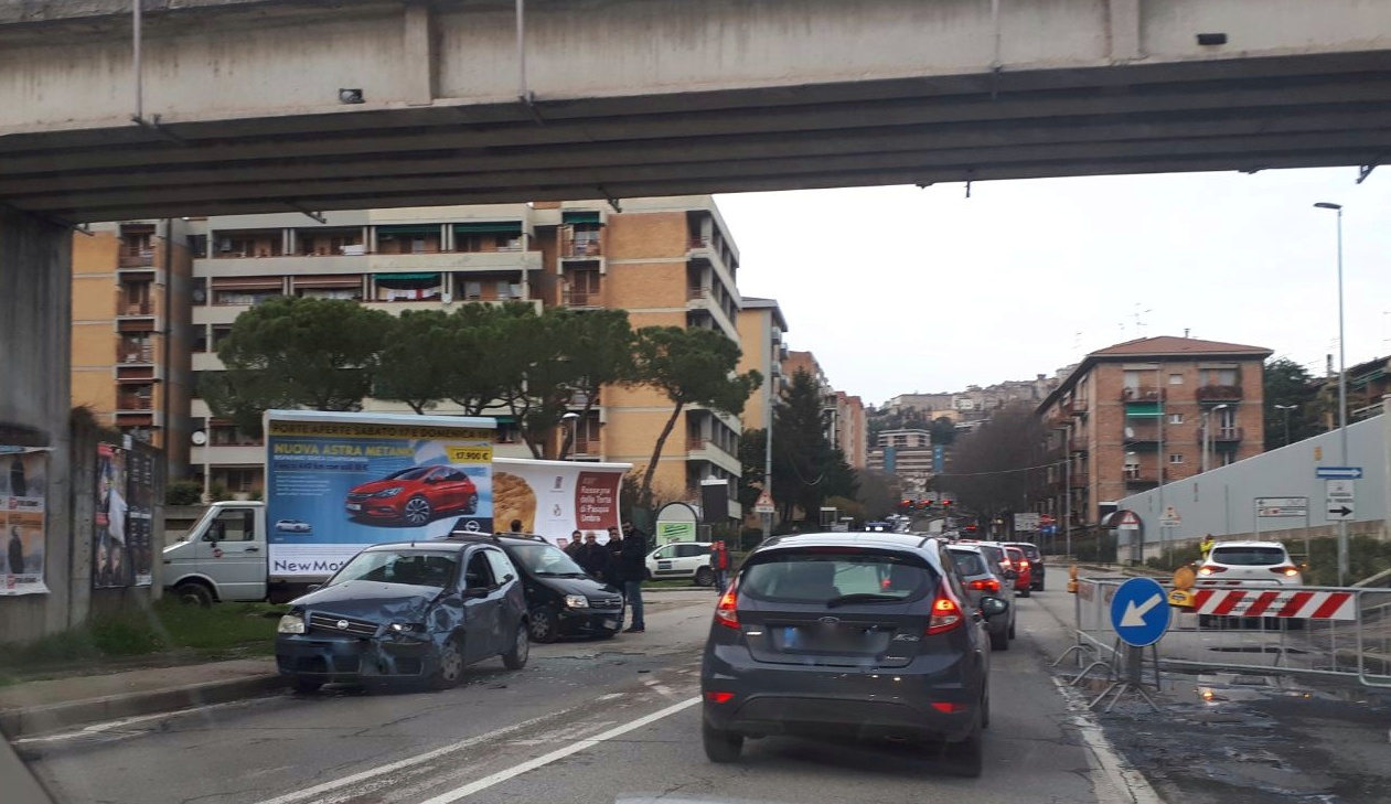 Perugia, due auto si scontrano in zona stazione: la città si blocca