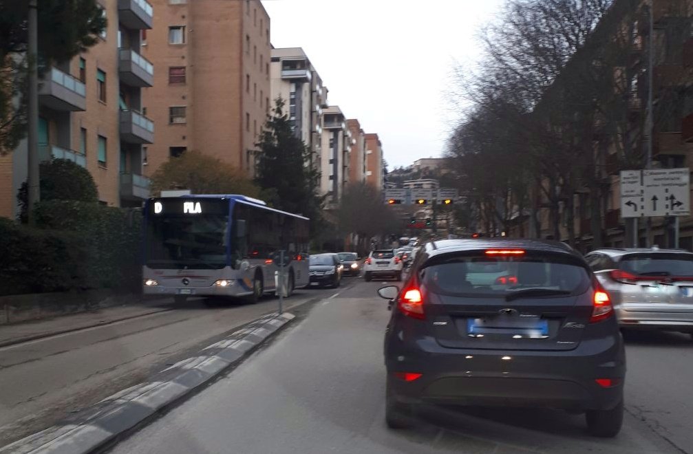 Arriva anche un autobus. E il traffico impazzisce