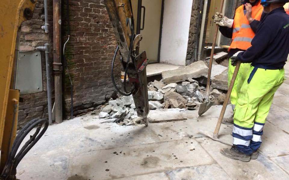 FOTO | Lavori in via dei Priori: la preoccupazione di Massimo Monni, la risposta della consigliere comunale Clara Pastorelli: «Sovrintendenza controlla ogni giorno, verrà tutto ricostruito»
