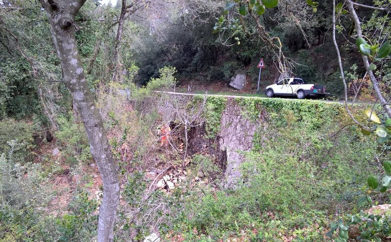 FOTO | Sul posto una squadra del servizio viabilità della Provincia: 10 metri il fronte di distacco. Le immagini del crollo
