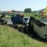 Tir a fuoco sulla A1 in zona Fabro