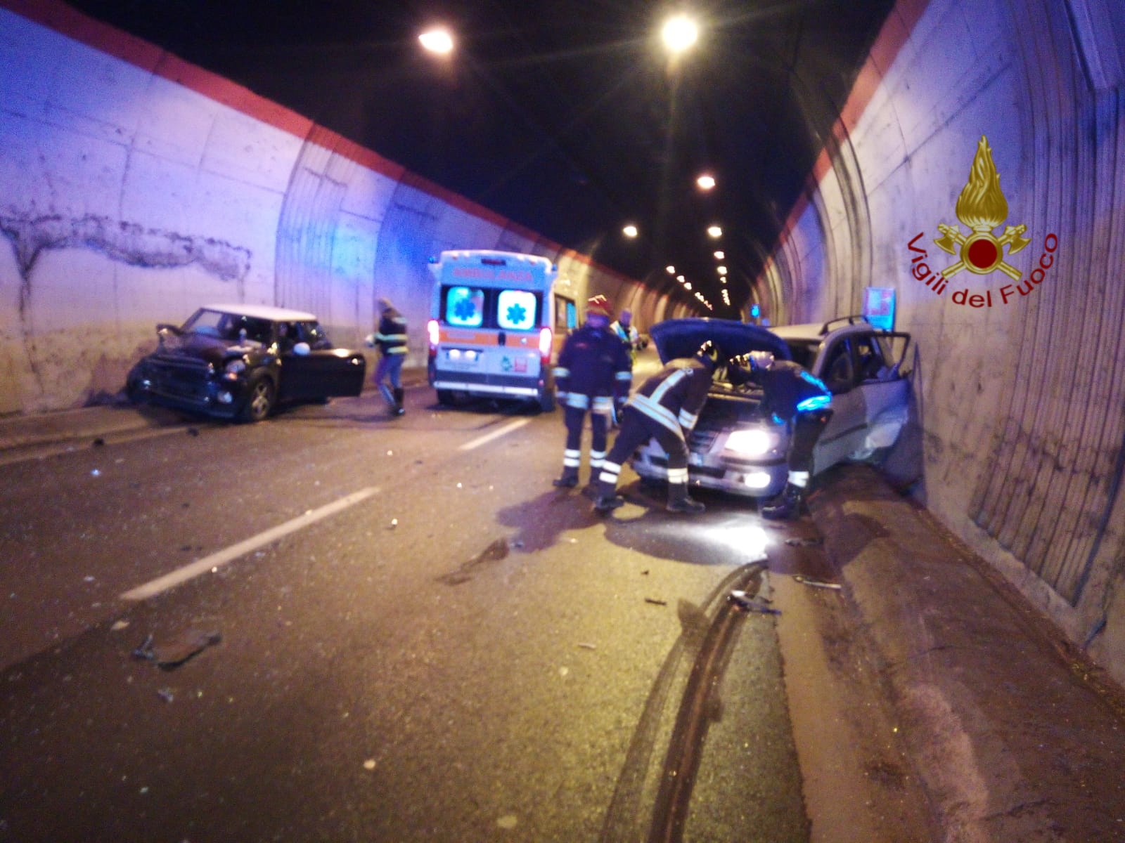 PERUGIA – Schianto in galleria nelle prime ore di venerdì. L’incidente intorno alle 6 di questa mattina, lungo il raccordo Perugia-Bettolle tra gli svincoli di Prepo e Piscille, in direzione Ponte San Giovanni. Dove due auto, una Mini di colore nero e una Fiat Cinquecento grigio metallizzato, sono venute a contatto mentre viaggiavano in direzione Ponte San Giovanni. Sembra che solo uno dei conducenti sia rimasto ferito, subito soccorso da vigili del fuoco (loro la foto) e personale del 118.