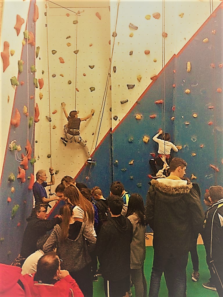 Il gruppo sportivo Raboclimbing di Gualdo Tadino, con Arnaldo, Enzo e Marina, ha permesso a tutti i ragazzi presenti di conoscere e provare l’arrampicata sportiva alternando tale attività tra un alunno e un ragazzo con disabilità.