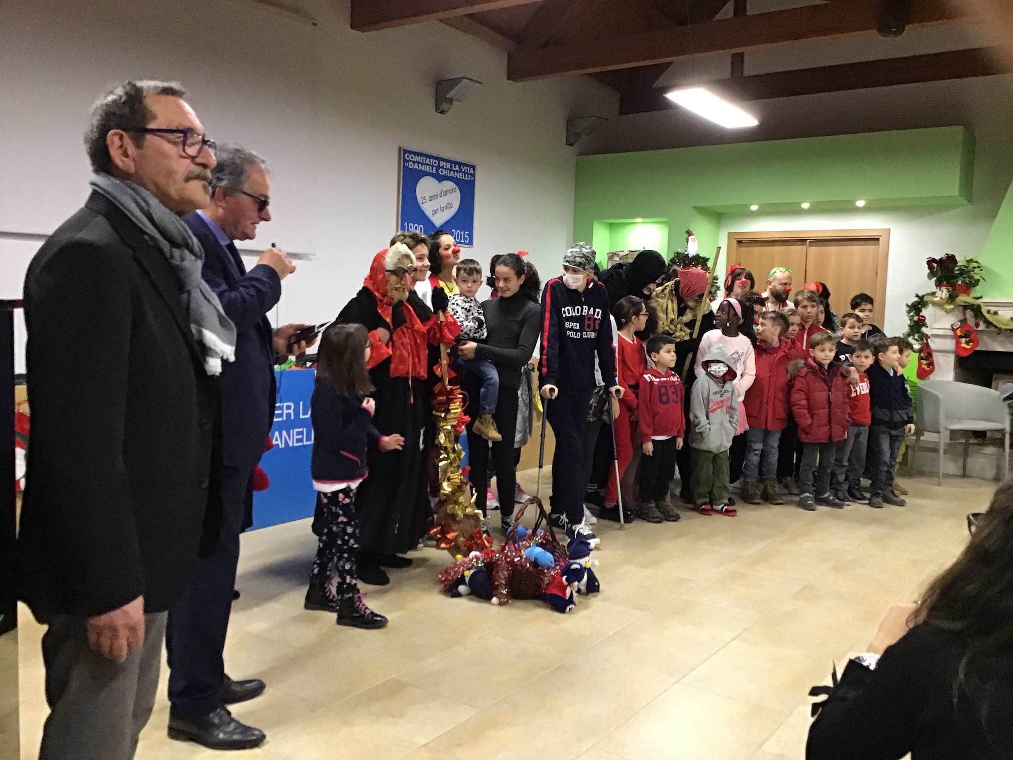 Tante sorprese anche per i bambini ospitati al residence Chianelli. Grazie all’aiuto prezioso dei volontari della sezione di Città di Castello i piccoli hanno assistito ad uno spettacolo unico e hanno avuto l’opportunità di vedere la simpatica vecchietta calarsi dal tetto del Residence e consegnare a ciascuno le calze donate sia dal Cral che dai dipendenti della Decathlon. Un bellissimo ed intenso momento, come da tradizione, è stata la bellissima esibizione del Coro dell’Università della Terza Età di Perugia che ha eseguito un bellissimo repertorio di brani natalizi, seguito dall’esibizione di una piccola amica del Comitato, Alyssa, vincitrice dell’ultima edizione dello Zecchino d’oro. Giochi e divertenti gag infine con i clown del Vip (Vivi in positivo) Perugia.