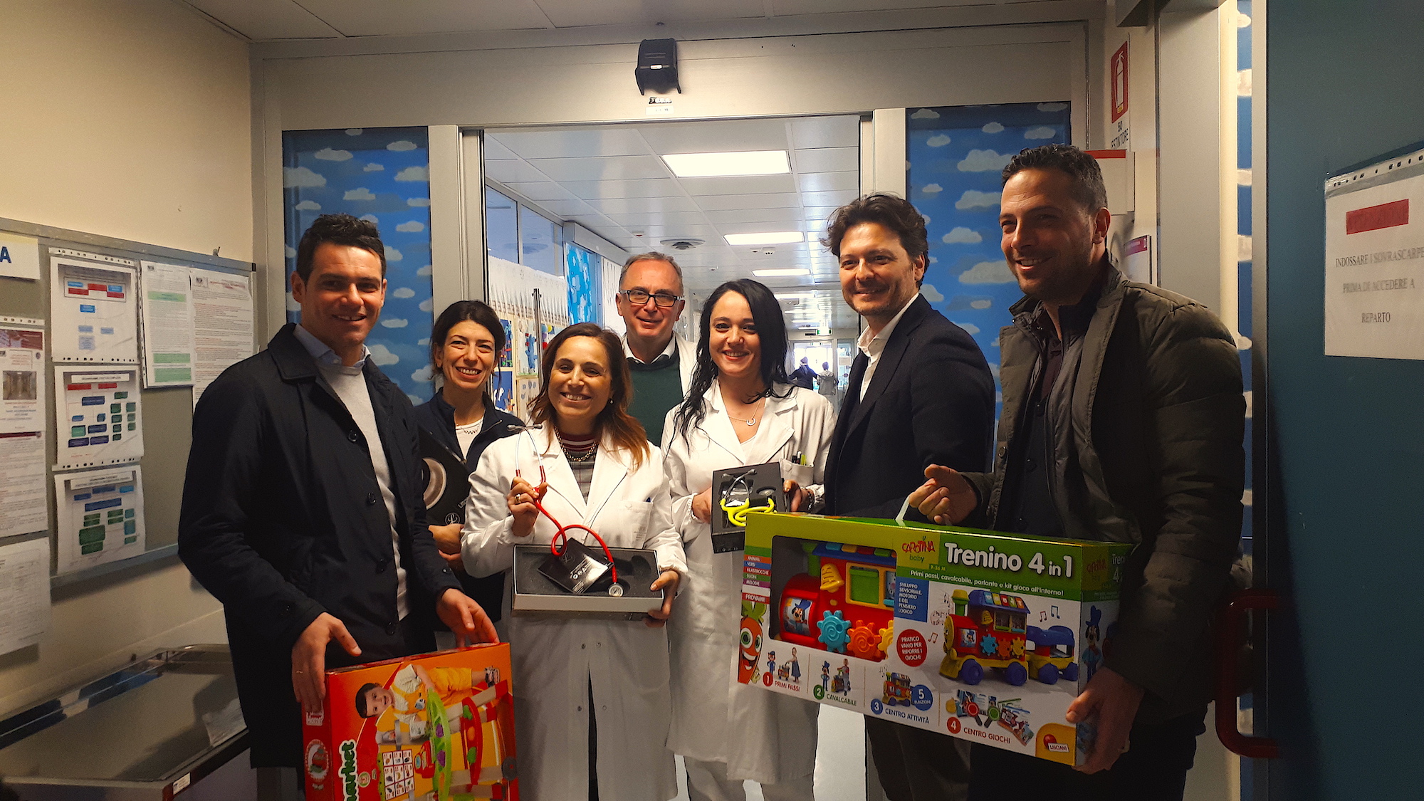 Gli strumenti sanitari, i giochi e il materiale ludico sono stati consegnati lunedì 7 gennaio al primario del reparto, il direttore Maurizio Caniglia, e al dirigente medico Katia Perruccio dal direttore commerciale dell’area Business Marcello Caputo, accompagnato dai colleghi Giordano Loperfido e Antonio Dimauro.