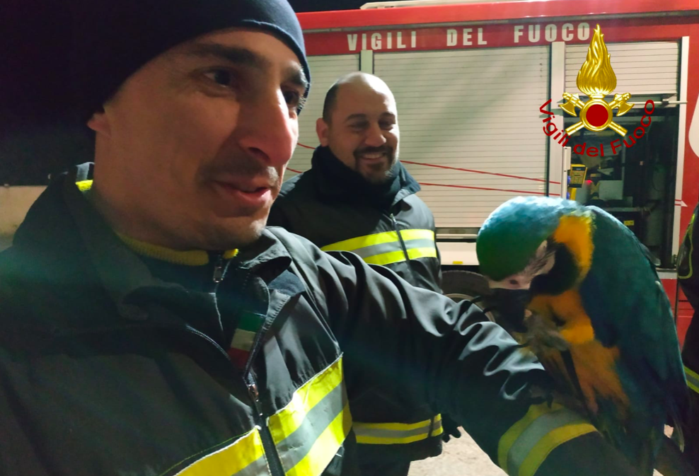 Una squadra dei vigili del fuoco si è così recata, nel tardo pomeriggio di martedì, in zona Pila per il recupero di un Ara, uno splendido esemplare di pappagallo a piume gialle e blu. L’animale, dopo essere volato via, era rimasto incastrato con il suo collare tra i rami di un albero. Nel giro di pochi minuti, i vigili del fuoco sono riusciti a liberarlo e riconsegnarlo alla piccola proprietaria.