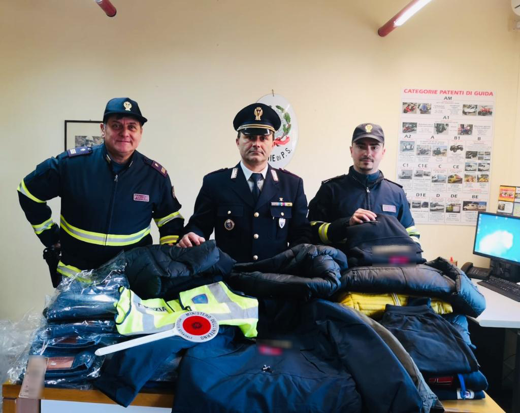 Non solo: la patente di guida del conducente è illeggibile l’auto risulta avere la revisione scaduta. Gli abiti vengono sequestrati, mentre le due persone in auto (due ternani di 49 e 53 anni con precedenti di polizia) vengono denunciati. Il conducente sarà poi ulteriormente sanzionato per la patente non leggibile e l’auto con la revisione scaduta.