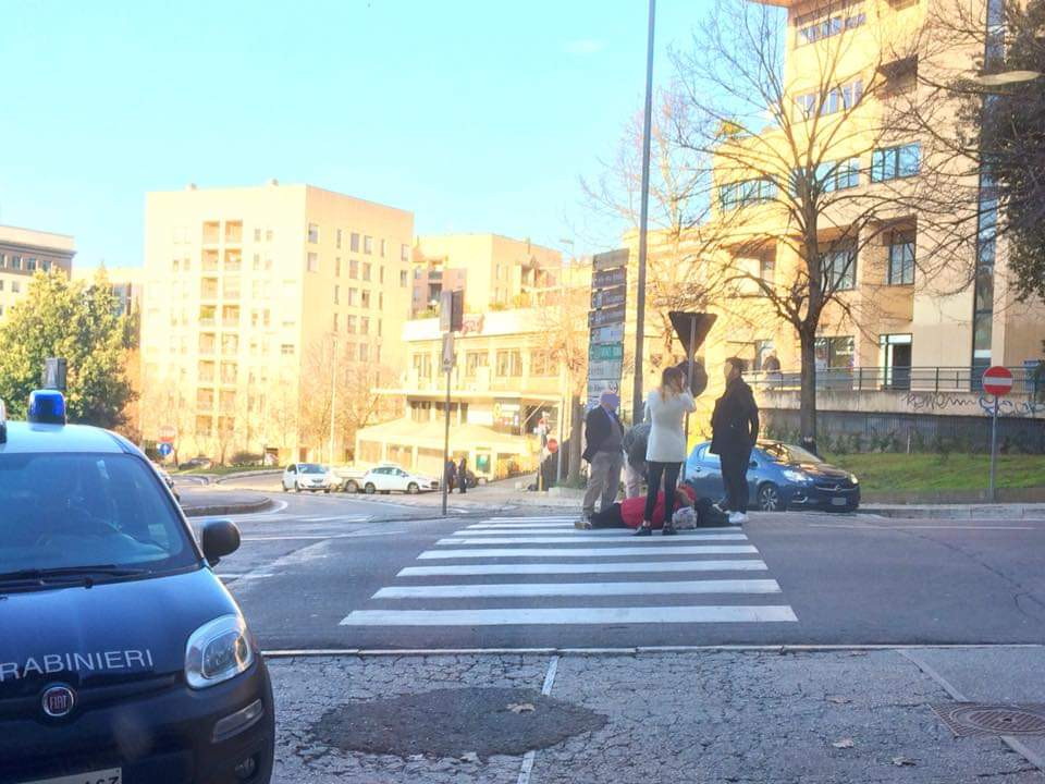 PERUGIA – Travolto, investito mentre attraversa la tre corsie di via Mario Angeloni. È successo questa mattina intorno alle 9: a finire in ospedale un giovane straniero, 27enne, trasportato al Santa Maria della Misericordia in codice giallo. Nella foto – pubblicata sulla pagina facebook della Tabaccheria18, proprio di fronte al punto dell’impatto – si vede il ragazzo ancora in terra, sulle strisce pedonali, mentre viene soccorso dai carabinieri e da alcuni passanti.