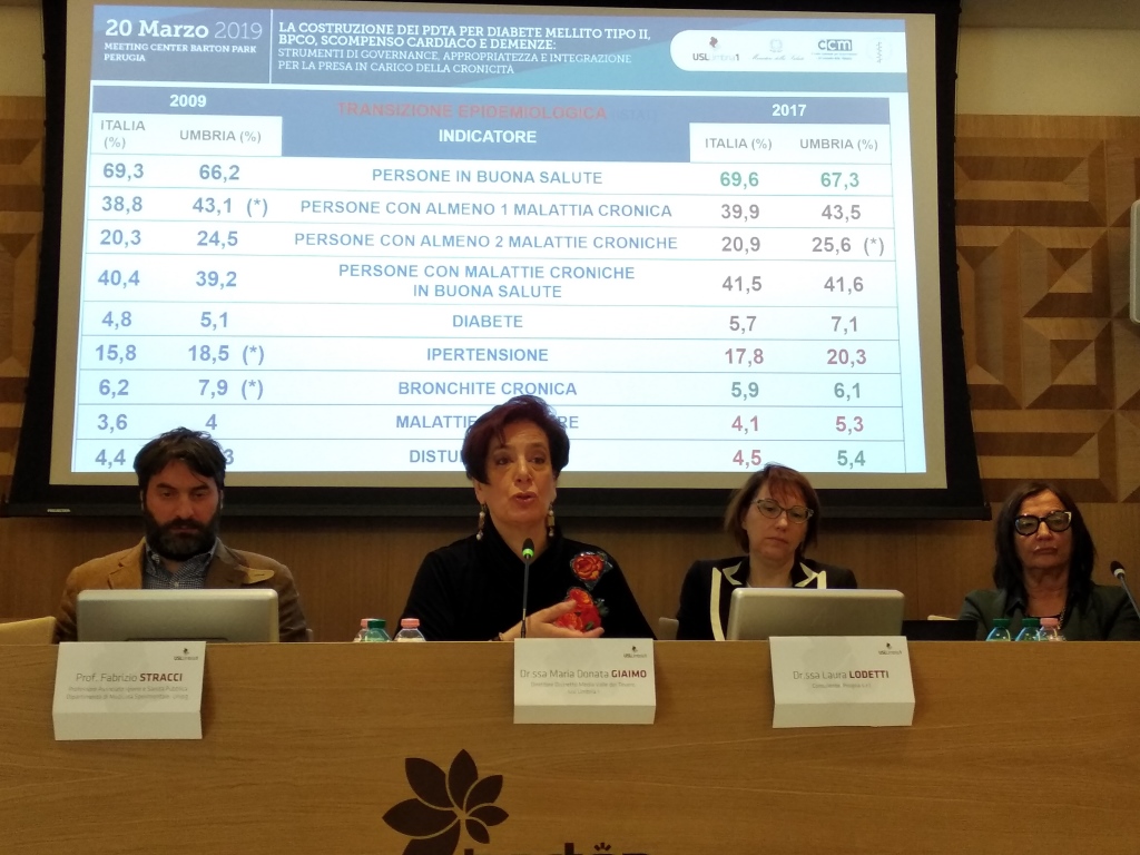 PERUGIA – Si è svolto mercoledì 20 marzo, al Meeting Center Barton Park di Perugia, l’evento di presentazione dei Percorsi diagnostico terapeutici assistenziali (Pdta) per i pazienti affetti da bronchite cronica ostruttiva, per i pazienti affetti da scompenso cardiaco e infine quello per i pazienti affetti da demenza, sviluppati dai professionisti della USL Umbria 1.