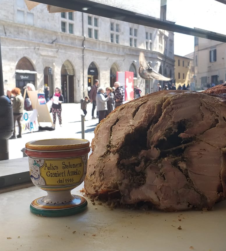 E il giudizio che danno i critici del Gambero Rosso non lasciano spazio alla concorrenza regionale: «Se a Perugia esiste una certezza, questa è sicuramente la porchetta dell’Antica salumeria Granieri Amato. Un piccolo chiosco, nella vivace piazza, che racchiude la quintessenza di un cibo di strada eseguito a regola d’arte: cottura nel forno a legna che conferisce sapore e succulenza alla carne; esperienza e passione dal 1916, che garantiscono la riuscita di un prodotto di qualità che attira clienti affezionati e turisti di passaggio. Il prezzo per un panino farcito di porchetta o di salumi di propria produzione è davvero modico».