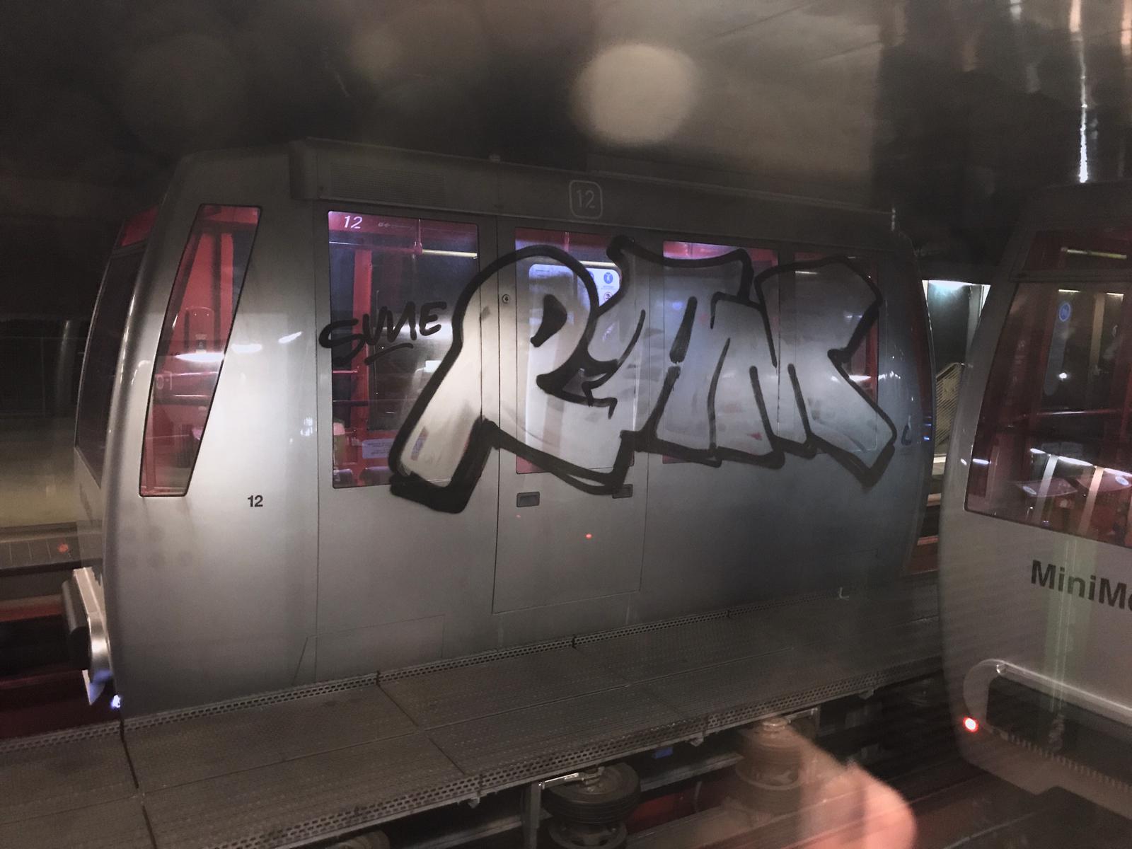 Secondo quanto si apprende, poco dopo la mezzanotte di lunedì due persone (presumibilmente due ragazzi) sarebbero stati individuati dall’occhio delle telecamere di sicurezza della stazione del minimetrò mentre scavalcavano le recinzioni per poi avvicinarsi alle due navette e disegnare graffiti. I due writer avrebbero lasciato anche la firma: “Sune”.