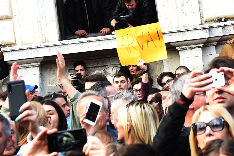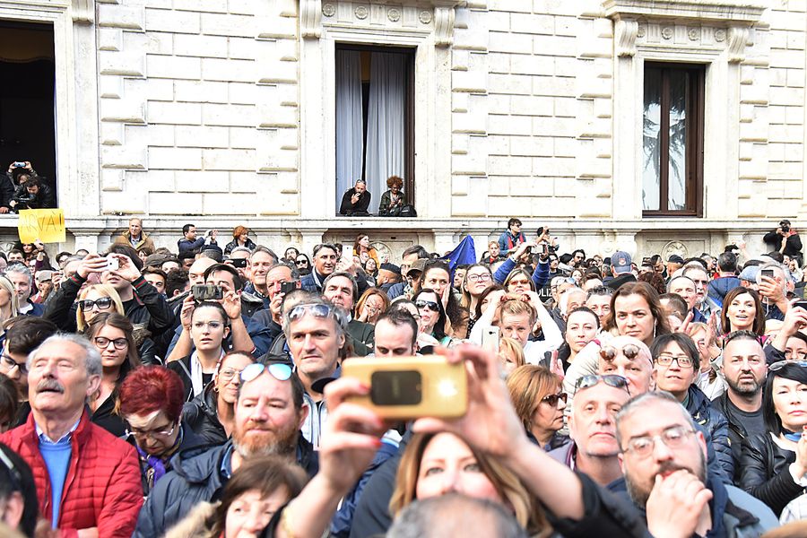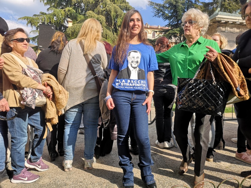 Tre generazioni di leghisti ad ascoltare le parole del primo ministro, e alla fine ressa per fare un selfie con il “Capitano”. Dall’altro lato della piazza, le proteste