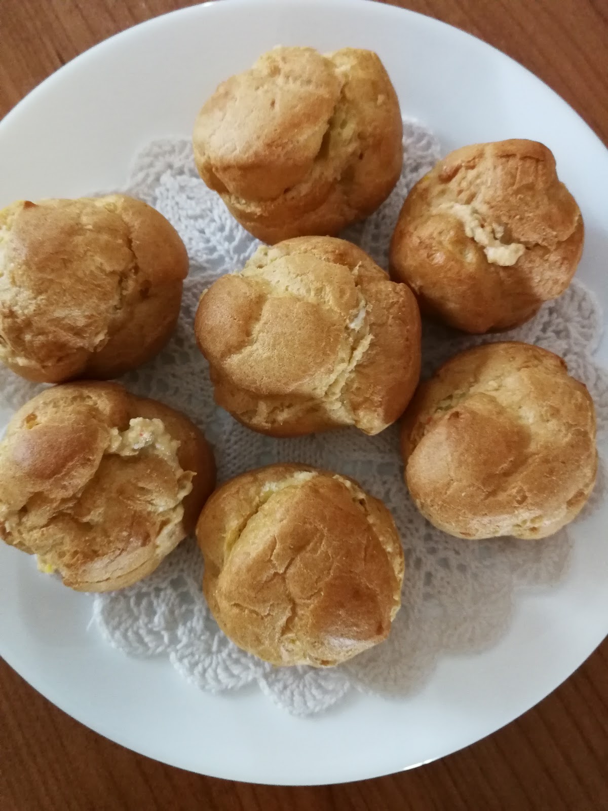 - Tagliare i bignè nella parte superiore, riempire la cavità con l’impasto e chiudere, rimettere in frigo fino al momento di servire