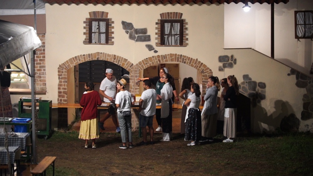 «La festa è nata nel 2000 (con qualche interruzione negli anni, ndr) – ha raccontato il presidente della ProArna, Lamberto Salvatori – dopo la riscoperta del diario parrocchiale che Don Baldelli scrisse dal 1846 al 1895, anno della sua morte. Tra i diversi racconti quello della fusione ci ha colpito particolarmente e da qui è nata l’idea della rievocazione. Mi preme sottolineare, oltre all’attenzione verso la storia e la tradizione, quella verso l’ambiente. Da tre anni la festa ha abolito l’uso della plastica. Usiamo solo ceramiche, bicchieri e caraffe di vetro per l’acqua, che offriamo gratuitamente. Tutto il resto è compostabile». La ProArna condivide gli stessi intenti di un’altra associazione, ospite dell’evento, e cioè Francesco nei sentieri, che organizzerà l’omonima ciclostorica il 28 e 29 settembre, con tappa proprio a Civitella d’Arna. «Le nostre associazioni – ha spiegato Cesare Galletti, presidente di Francesco nei sentieri – fanno parte di un progetto, ‘Il volo di Hypnos: dalla terra d’Arna a Mevania’, sostenuto dalla Fondazione Cassa di Risparmio di Perugia, che punta a valorizzare determinati luoghi tra cui Civitella, dove è stata rinvenuta una testa in bronzo romana di Hypnos, attraverso una mobilità lenta come può essere quella con la bicicletta. Difatti sarà realizzato un percorso tabellare permanente, tracciato, che da Perugia guiderà i ciclisti verso Assisi, Cannara e Bevagna».