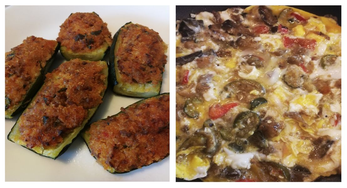 FRITTATA DI VERDURE: 8 uova | 1 zucchina piccola |1 pomodoro maturo| ½ melanzana | ½ cipolla | olio e.v.o. q.b. | sale e pepe q.b.