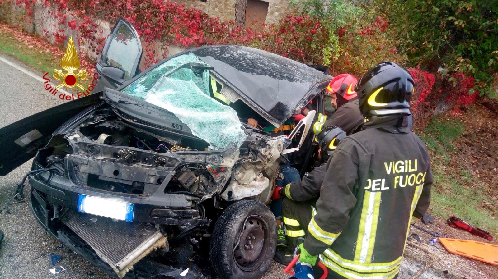 PERUGIA – Una persona questa mattina è stata estratta dalle lamiere contorte della sua auto, dopo un violento scontro frontale con un mezzo pesante. Un camion, che in quel momento transitava in direzione opposta alla sua sulla strada che da Petrignano porta a Sant’Egidio. A liberarla dall’abbraccio dei rottami sono stati i vigili del fuoco di Perugia – intervenuti sul posto, intorno alle 8.30, con due squadre – che l’hanno poi consegnata ai sanitari del 118 per il trasporto in ospedale.