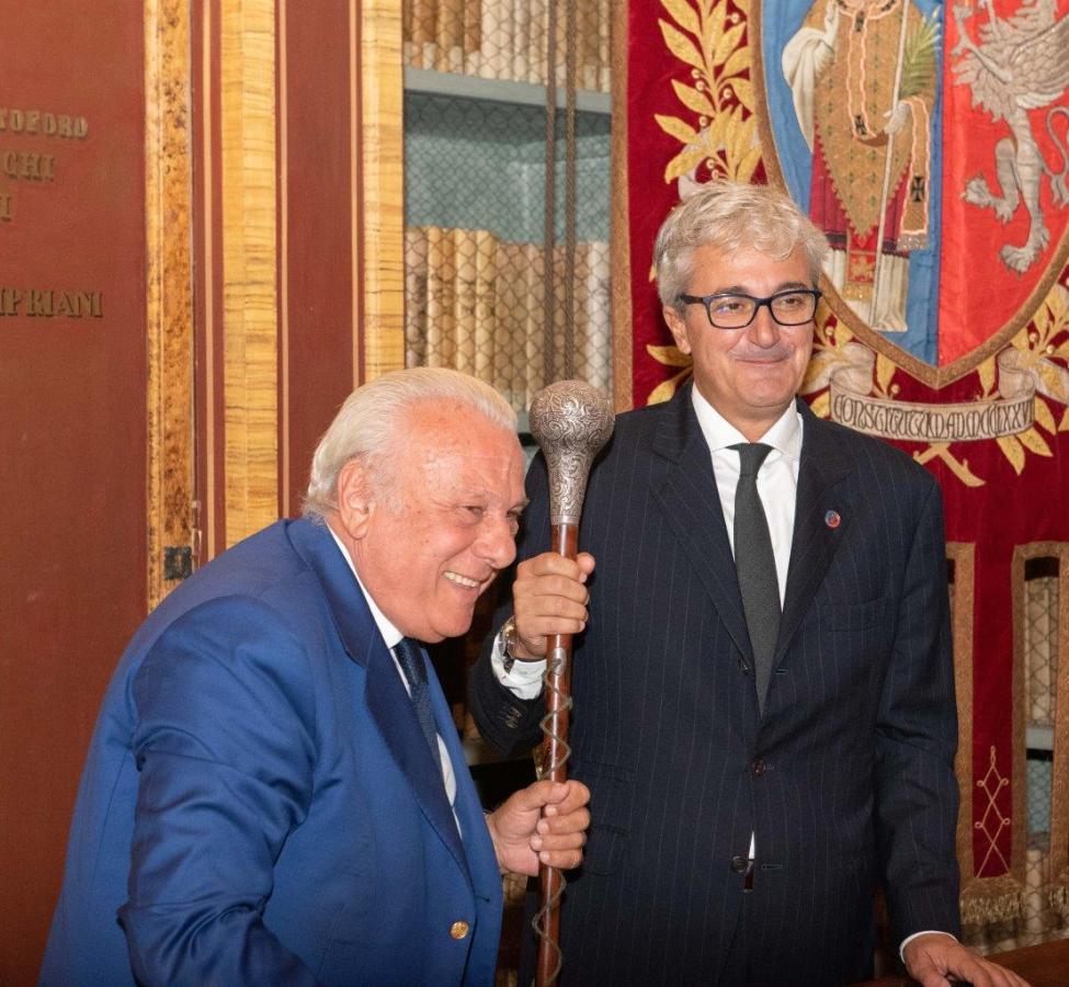 Il Rettore uscente Franco Moriconi ha quindi consegnato al Rettore eletto Maurizio Oliviero la mazza, simbolo del governo dell’Ateneo “espressione non di potere ma di servizio da rendere all’Istituzione e alla Comunità”: il Rettore eletto l’ha ricevuta dichiarando di “custodirla nel rispetto e nell’osservanza di tali principi per il bene del nostro Ateneo e delle nostre Città”. Mentre i presenti accompagnavano il gesto e la seguente stretta di mano con un lungo applauso. Il nuovo Rettore, Oliviero, entrerà nel pieno delle funzioni il 1°novembre 2019.