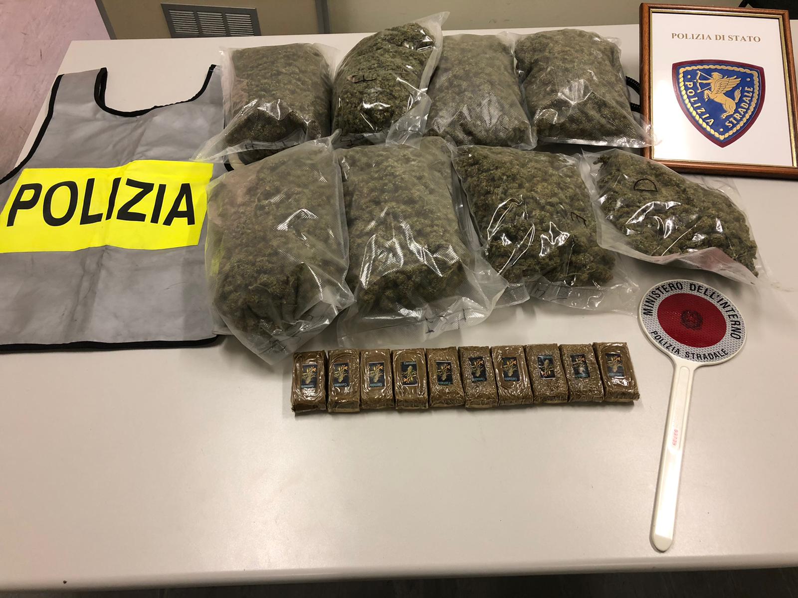 «Non era più tranquillo», riferiranno poi gli agenti. Ma, soprattutto, il voluminoso involucro dell’impianto luci acustica era ancora lì sul sedile posteriore. È bastato poco alla Stradale per verificare il “prezioso” carico: ben 3157,7 grammi di canapa indiana e 979,80 grammi di hashish contenute in due buste di plastica pesante di quelle normalmente utilizzate per la spesa. D’intesa con la procura della Repubblica di Terni, l’uomo è stato arrestato e rinchiuso nella Casa circondariale di Terni.