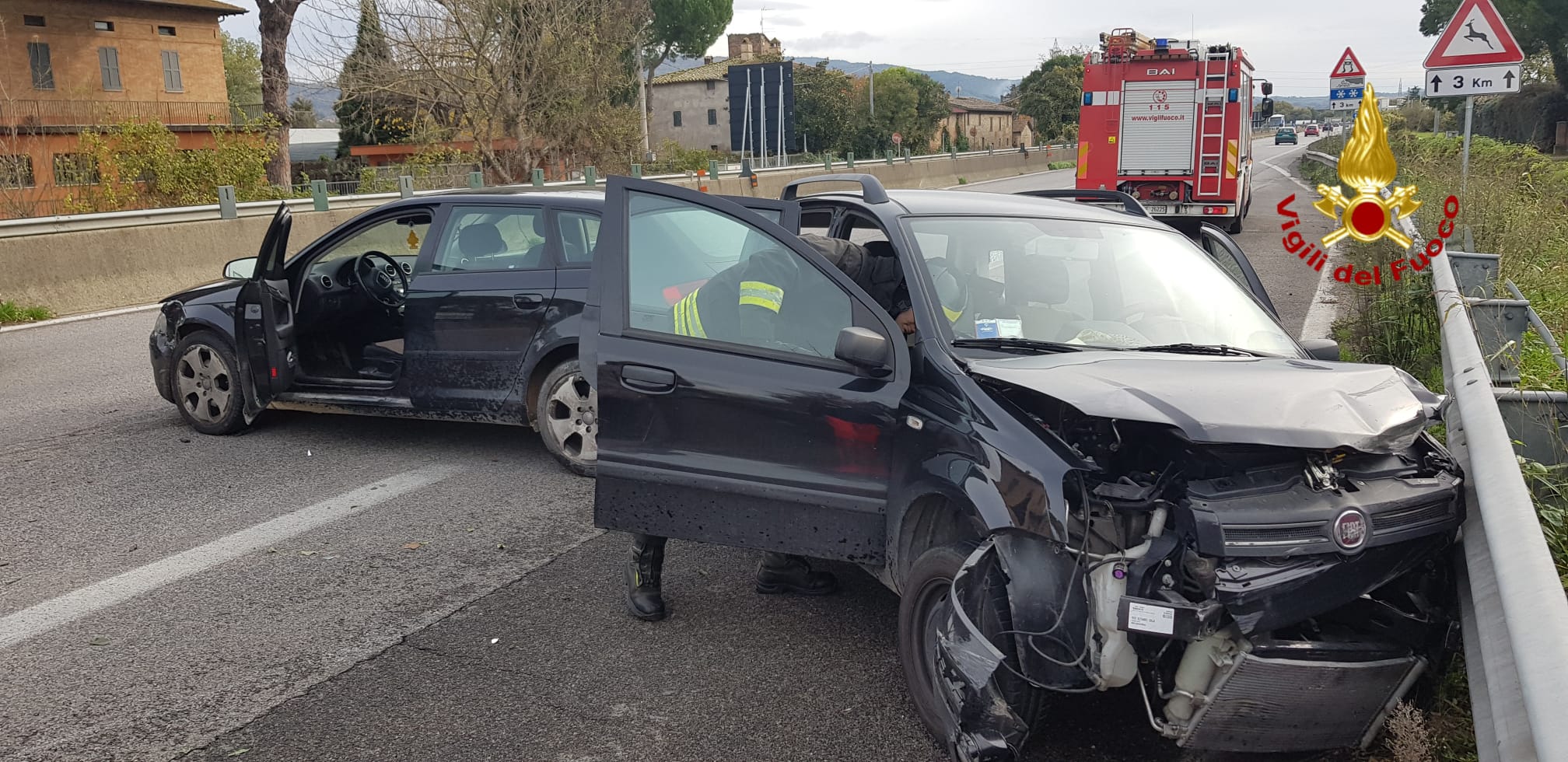 Due, le automobili coinvolte. E due anche le persone rimaste ferite, in maniera lieve, in seguito all’incidente: soccorse dai vigili del fuoco di Perugia e affidate alle cure dei sanitari del 118.