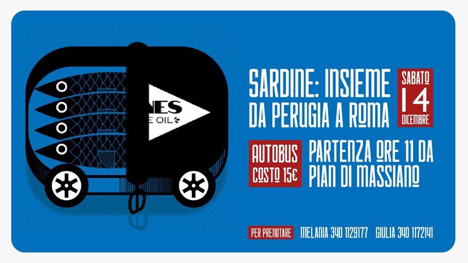 PERUGIA – Anche le sardine di Perugia e dell’Umbria saranno in piazza a Roma sabato 14 dicembre per la “più grande manifestazione ittica della storia” in piazza San Giovanni. Dopo aver riempito piazza della Repubblica a Perugia e dopo aver visto crescere l’interesse intorno a questo movimento anche nelle città dell’Umbria è arrivato il momento di scendere di nuovo in piazza insieme a tutte le sardine d’Italia.