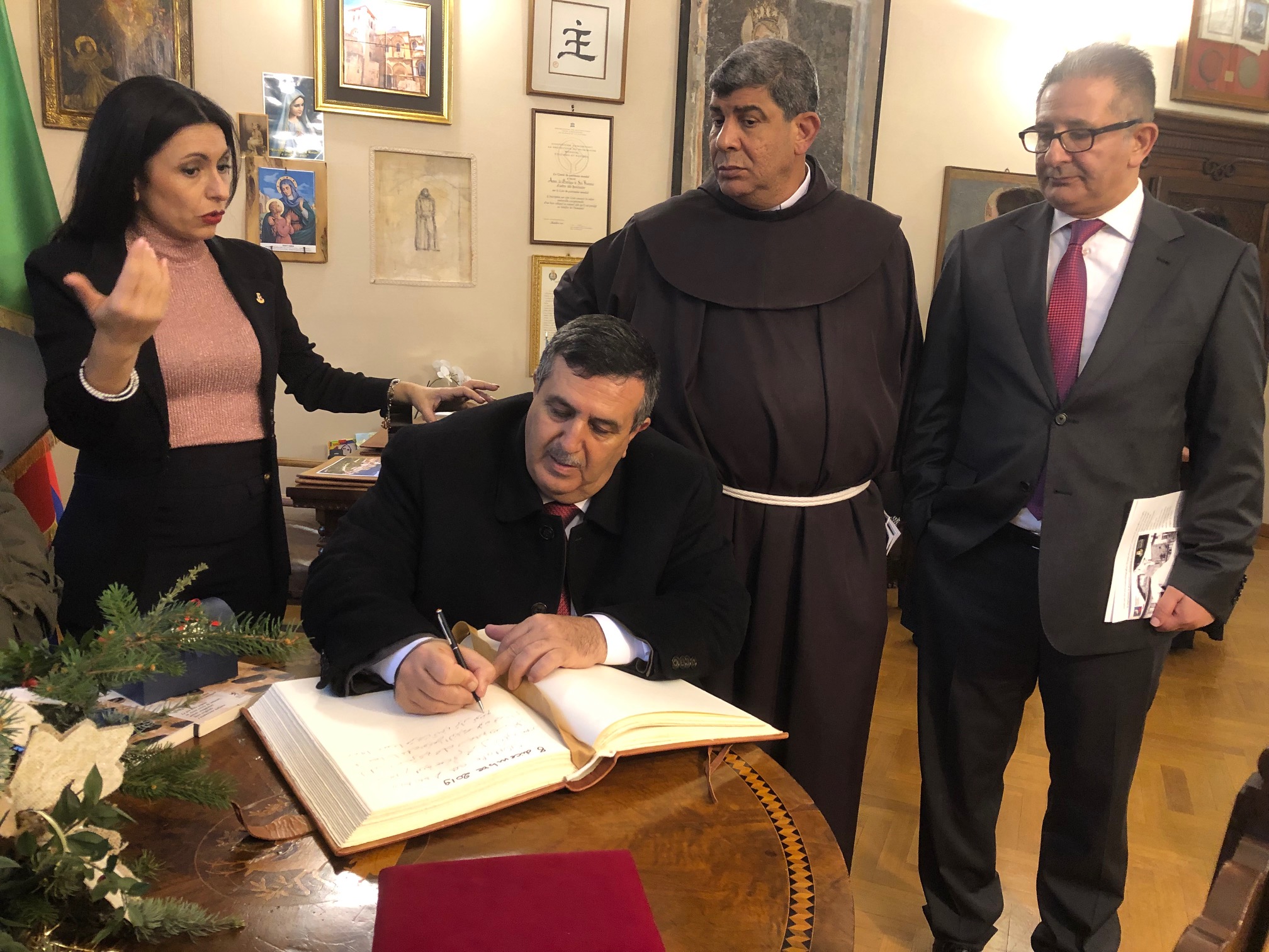 ASSISI (Perugia) – Un evento importante caratterizza queste festività natalizie: le celebrazioni per il trentennale del gemellaggio tra Assisi e Betlemme, un legame che unisce le due città simbolo della religiosità nel mondo e dalle quali si sprigiona ogni giorno un segnale di pace e speranza. Quest’anno, a cominciare da ieri, festa dell’Immacolata, ad Assisi per rinsaldare il gemellaggio è arrivato il sindaco di Betlemme, Anton Salman, accompagnato dall’ambasciatore di Terra Santa presso la Santa Sede Issa Kassissieh e da padre Ibrahim Faltas ofm della Custodia di Terrasanta.