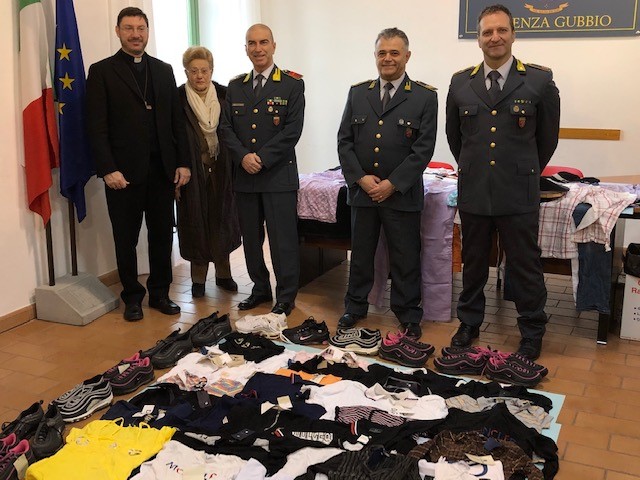 GUBBIO (Perugia) – Il Comando provinciale di Perugia ha donato alla Caritas numerosi capi di abbigliamento, sequestrati dalla tenenza di Gubbio presso fiere e mercati settimanali nell’ambito della lotta alla contraffazione e alla tutela dei marchi.
