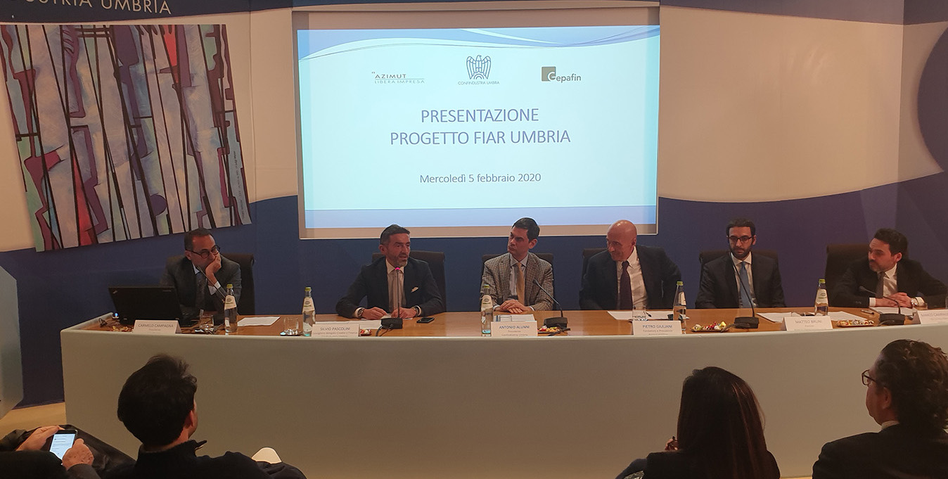 È stato presentato ai rappresentanti del sistema produttivo il fondo di investimento “Fiar Umbria” (Fondo di investimento alternativo e riservato), promosso da Confindustria Umbria insieme alla finanziaria regionale Gepafin e ad Azimut Libera Impresa SGR. Si tratta della prima iniziativa di questo genere in Italia che soltanto nella giornata di presentazione ha avuto manifestazioni di interesse per oltre 2 milioni di euro.