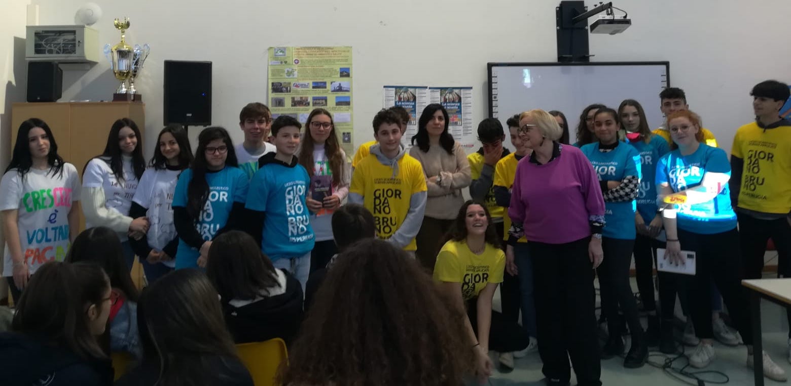 PERUGIA – Le classi del Biennio del Licei Linguistico e del Liceo Scientifico delle Scienze Applicate dell’IIS “Giordano Bruno” hanno incontrato, nell’ambito Progetto “Libriamoci” (MIUR-CEPELL Centro Per il Libro e la Lettura), in Aula Magna, l’autrice Nadia Terranova, finalista Premio Strega 2019 per il romanzo Addio fantasmi; hanno partecipato all’incontro per il romanzo della medesima autrice Le nuvole per terra, anche le classi terze medie 3A, 3B e 3E dell’ Istituto Comprensivo PG9 di San Martino in Campo e San Martino in Colle, in Rete con il “Giordano Bruno” per il Progetto “Libriamoci” di educazione alla lettura