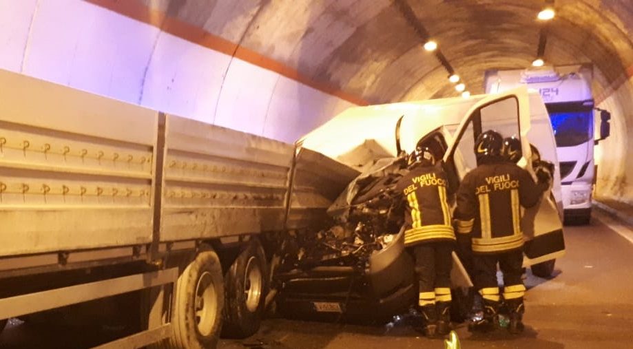 PERUGIA – Brutto incidente stradale giovedì mattinata all’interno della prima galleria della Perugia-Ancona, in direzione di quest’ultima. Stando a una prima ricostruzione dei soccorritori, il furgone in foto (immagine scattata dai vigili del fuoco di Perugia) avrebbe tamponato, schiantandosi, un mezzo pesante fermo a sua volta a causa di un altro incidente, di lieve entità, accaduto poco più avanti.