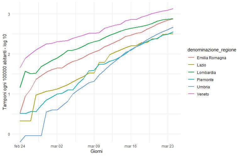 Prenderà qualcosa del metodo Crisanti l’Umbria, che pure non lo ha più come una risorsa scientifica della sua Università? La strada comune sarà quella dei tamponi. L’Umbria ha la coscienza a posto, è stata tra le Regioni italiane quella che ne ha fatti di più (come si vede nella grafica) rispetto alla popolazione. Di gran lunga la prima tra quelle finora meno colpite dal virus, pur non avendo focolai. Ma su questa via c’è ovviamente molto cammino da fare. Da oggi si parte in Umbria per compiere un nuovo tratto. Più tamponi, rapidi, quick, per avere più indicazioni sul territorio, continuando a fare di tutto per rafforzare i presidi ospedalieri e renderli in grado di reggere l’impatto di un’onda alta, che tutti sperano di evitare, ma che non si può affatto escludere. Da oggi allora anche qui più tamponi per arrivare, si spera presto, ad avere meno urgenze in ospedale e progressivamente a spegnere la miccia dei nuovi contagi.