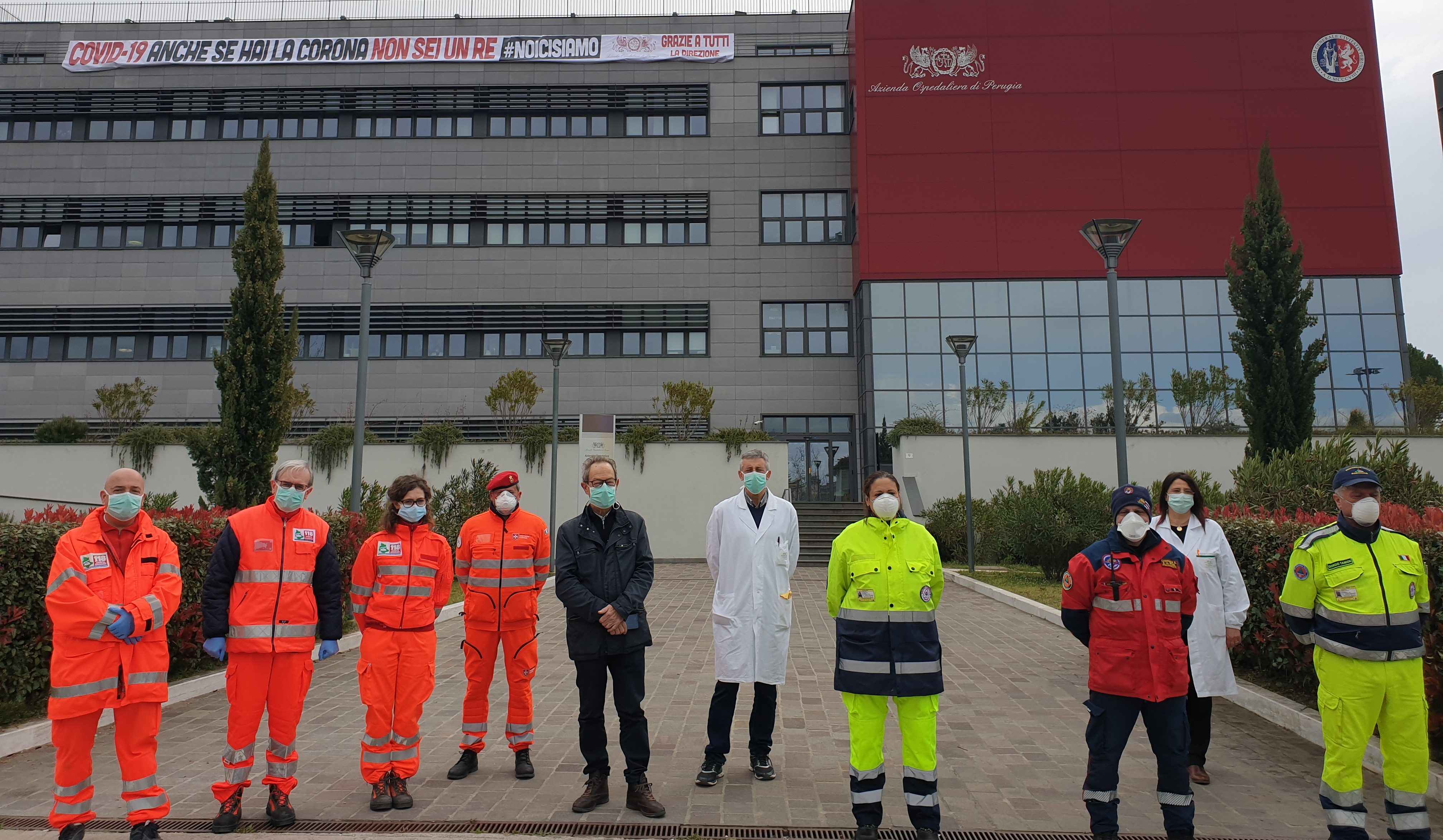 Questa mattina la Direzione aziendale ha voluto esprime sentimenti di vicinanza a tutto il personale del S.Maria della Misericordia con un gigantesco striscione “Covid 19, anche se hai la corona non sei un re #noicisiamo. Grazie a tutti”, donato dai dipendenti di un’agenzia di comunicazione e istallato sulla terrazza del Creo. Un altro esempio del binomio che l’ospedale è la città. Nello striscione figura anche un ringraziamento ai cittadini che in questo momento complicato non hanno fatto mancare quella linfa necessaria a trasmettere ancora maggiori energie agli operatori sanitari.