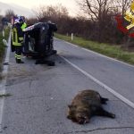 Investe un cinghiale: l’auto si ribalta e lui finisce in ospedale