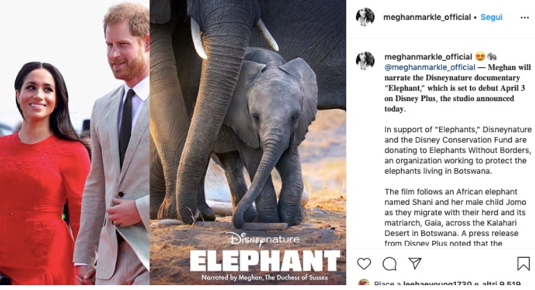 Ma c’è di più, perché oltre alla madre e alle persone più care la bella Meghan potrebbe tornare a fare quel che le viene particolarmente bene: recitare davanti a una macchina da presa. Intanto, qualche giorno fa ha reso noto di aver prestato la propria voce per il documentario della Disney “Elephant” che andrà in onda prossimamente per contribuire a sostenere un’organizzazione che si occupa di proteggere gli elefanti del Botswana.