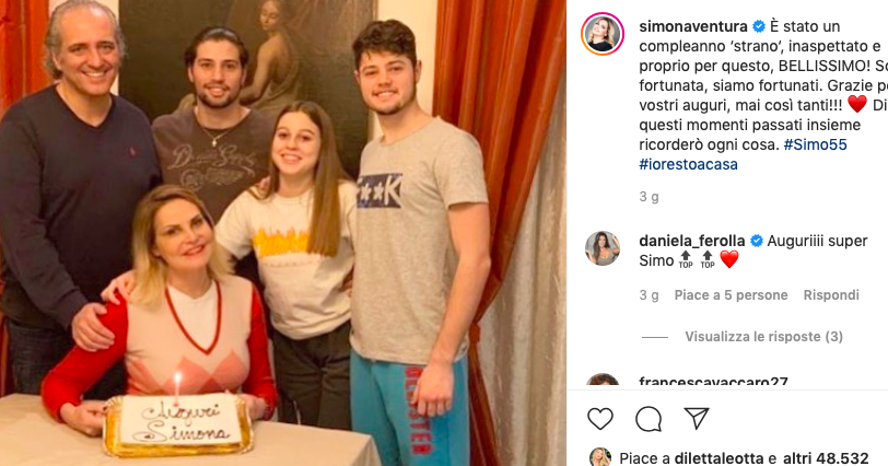 Parole e musica di Simona Ventura, che ha appena festeggiato i suoi primi 55 anni in quarantena e ha approfittato del proprio profilo Instagram per condividere la festa in famiglia con tanto di torta e ringraziare le persone importanti della sua vita e anche fan e follower per i tanti auguri ricevuti. E dire che Super Simo aveva anche pensato a una grande festa per festeggiare il suo compleanno, chiaramente annullata per l’emergenza coronavirus. Lo racconta in un altro post su Instagram. «Prima che iniziasse questa durissima prova, avevo pensato, dopo tanti anni, di organizzare una grande festa stile ‘club 55 ‘ con tutte le persone che mi vogliono bene, e sono tantissime! Dopo quasi un mese di quarantena, posso dire che la mia vita, come quella di tutti voi, è completamente stravolta, e i miei obiettivi sono cambiati, ma non credo in peggio, anzi! Voglio pensare che ne usciremo più forti e che torneremo migliori di quello che siamo sempre stati! Il mio pensiero va alle persone che soffrono e che combattono in prima linea. Oggi più che mai sono orgogliosa di essere italiana! Grazie a tutti!!». Parole importanti accompagnate da un video con foto delle persone più importanti della sua vita in cui, fa notare qualcuno, manca l’ex marito Stefano Bettarini.