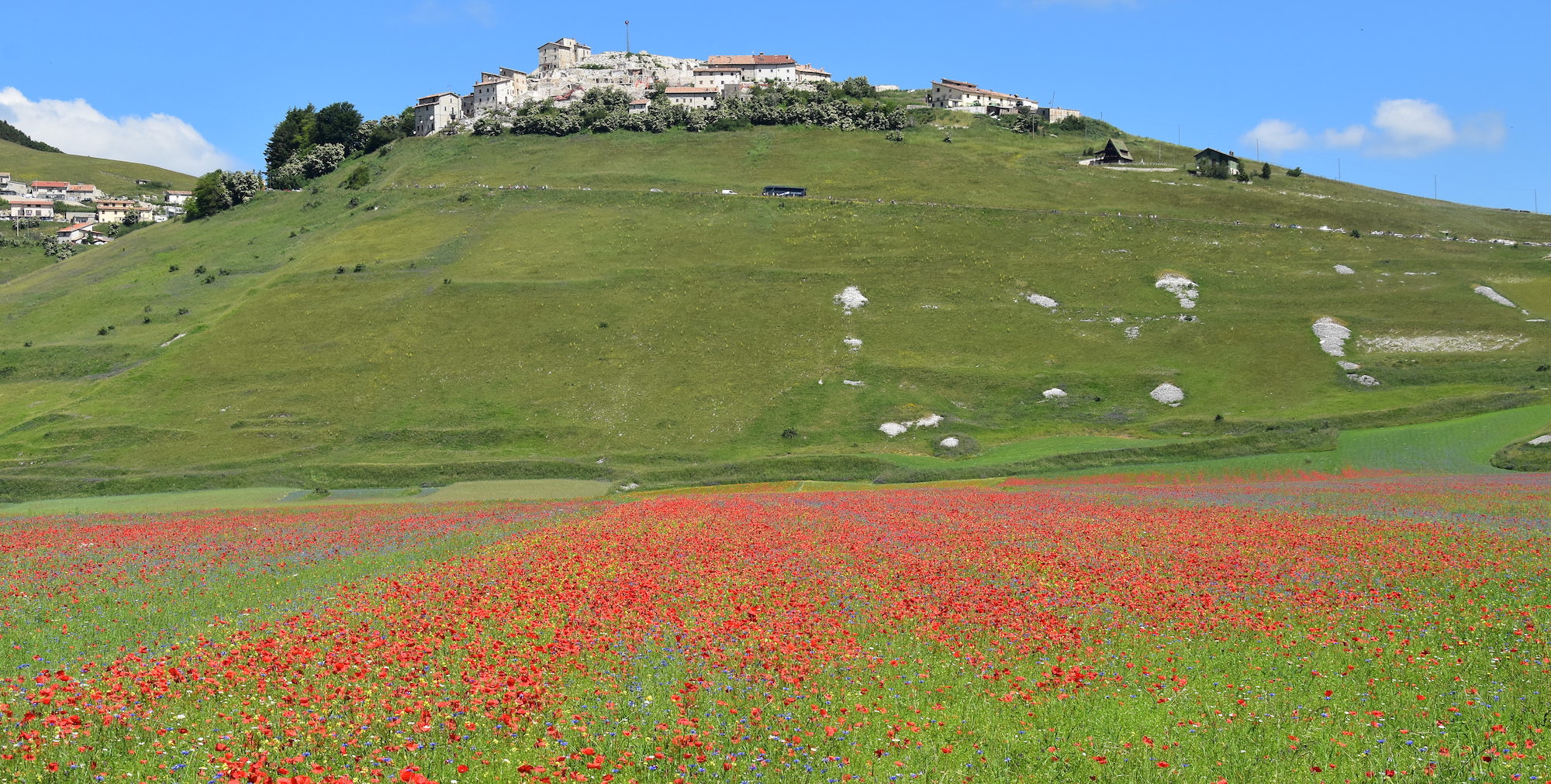 NORCIA (Perugia) – La fioritura del Pian Grande di Castelluccio di Norcia da sempre richiama tanta gente grazie alla bellezza dei suoi colori in un paesaggio che offre uno scenario unico al mondo.