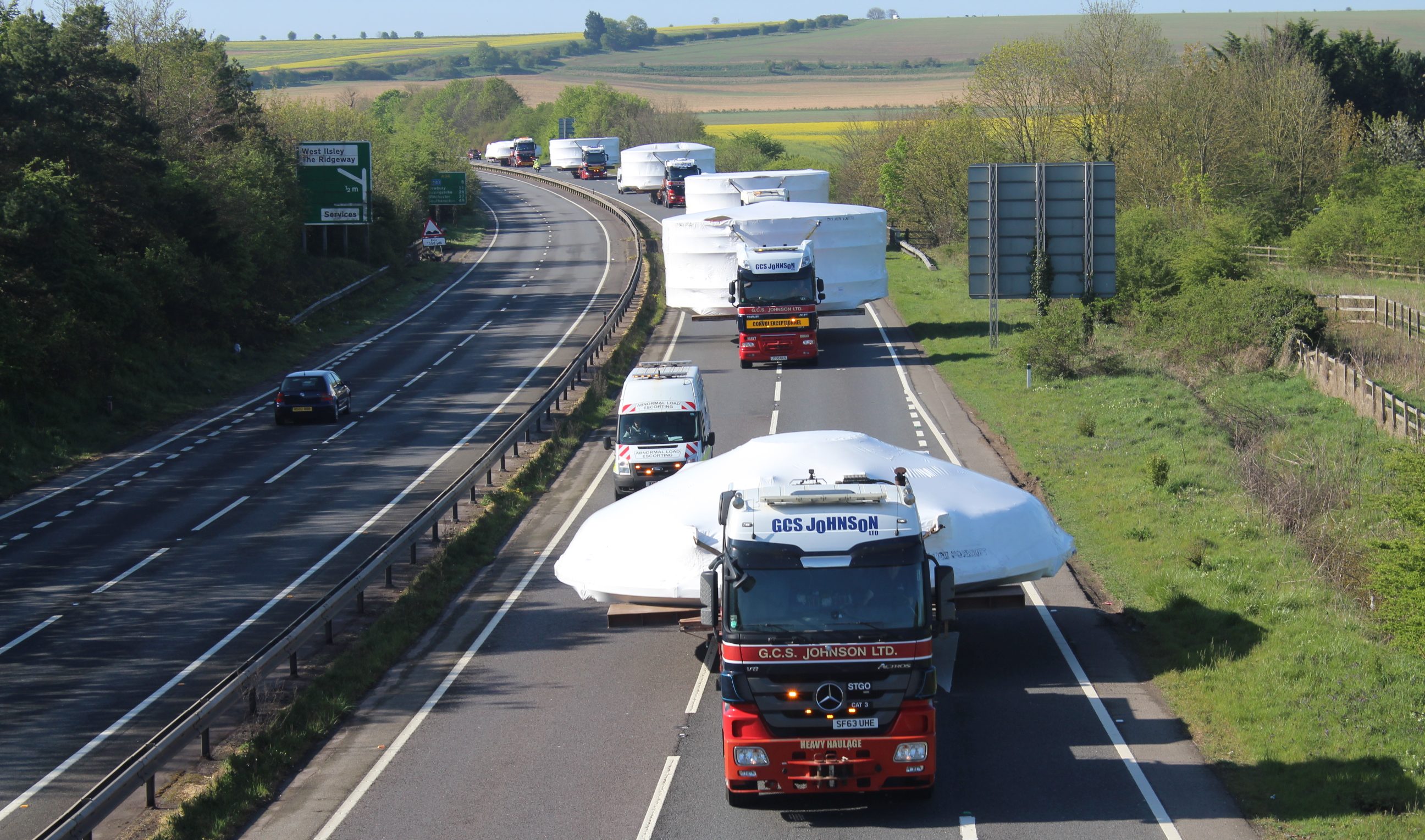 La spedizione nel Regno Unito dall’Italia è stata effettuata via nave. Le sezioni della camera sono state poi trasportate con un convoglio di camion dal porto di Portsmouth ad Harwell – presso il National Satellite Test Facility (NSTF) nell’ Oxfordshire – in quello che è stato uno dei più grandi movimenti su strada singola che la Gran Bretagna abbia mai visto: l’autostrada era appena sufficiente per questo trasporto veramente “speciale”.