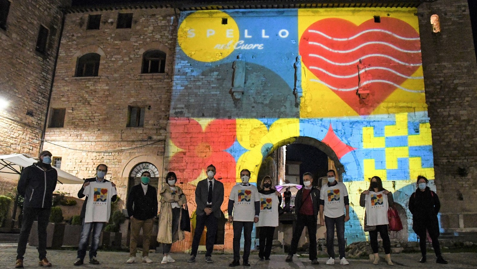Da venerdì sera una delle porte simbolo della città è diventata parte integrante dell’iniziativa di beneficenza promossa dalle Associazioni Amici di Spello, L’Officina del Fantastico, Pedale Spellano, Terziere Mezota con il patrocinio del Comune di Spello, finalizzata a raccogliere fondi da destinare a situazioni di emergenza del territorio spellano. Nella facciata della porta, per una settimana, è visibile il logo disegnato da Alessandro Filippucci (alias Milk Graphic) che racchiude tutti gli elementi simbolo della città: le foglie di ulivo, i fiori, le rotondità del Subasio, due motivi che richiamano i mosaici della Villa e un cuore con il timbro postale. L’accensione, come risposta della città in questo momento così buio, è avvenuta alla presenza dei rappresentanti delle Associazioni promotrici , del sindaco Moreno Landrini e dei componenti della Giunta comunale. Parte integrante dell’iniziativa è una t-shirt promozionale con il logo “Spello nel cuore” che sta riscuotendo un grande successo non solo tra gli cittadini ma anche tra gli amici di Spello sparsi in tutto il mondo.