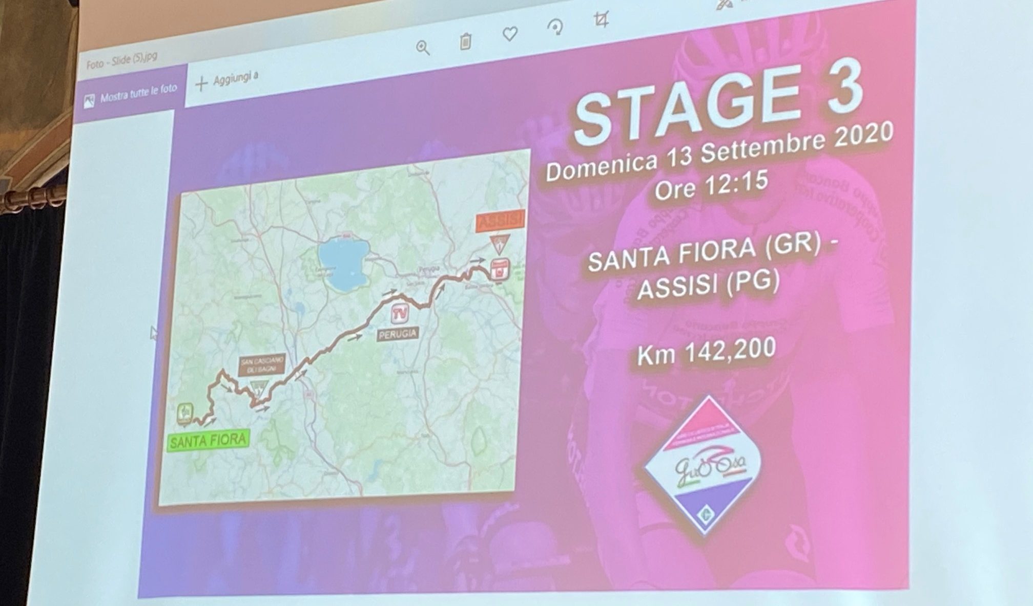 Il sindaco Stefania Proietti nell’aprire i lavori ha sottolineato: “Il Giro Rosa, che torna ad Assisi dopo 22 anni, rappresenta la metafora di una sfida, la sfida della ripartenza, della rinascita e della speranza. Con entusiasmo e orgoglio abbiamo accolto l’invito degli organizzatori e messo in moto la macchina amministrativa per ospitare questo evento che per noi ha una notevole valenza sportiva e sociale, sportiva perché si tratta di una prestigiosa manifestazione agonistica e soprattutto sociale perché riguarda lo sport fatto dalle donne. E proprio alle donne, al loro impegno e al loro sacrificio, si può legare la ripartenza di Assisi e del Paese”.