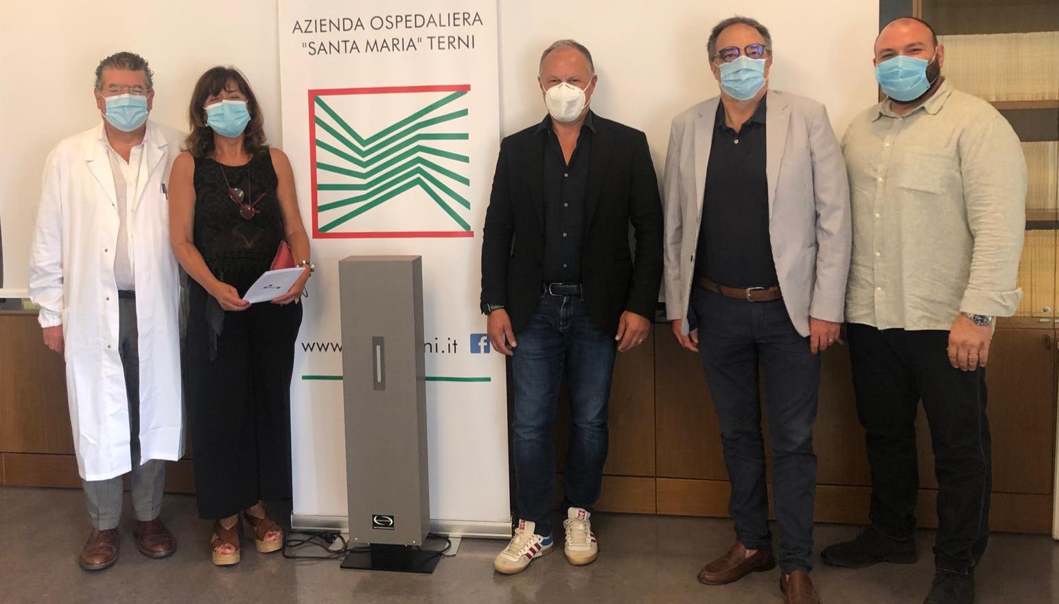 Si tratta di lampade che, con apposite schermature, purificano l’aria nel corso delle 24 ore, anche in presenza di persone. I nuovi dispositivi medici, certificati dall’Istituto Superiore della Sanità, saranno collocati nelle sale d’attesa dei Poliambulatori e del Pronto Soccorso per rendere ancora più sicuri alcuni degli ambienti più frequentati del presidio ospedaliero. Per ringraziare simbolicamente i donatori ternani, la consegna dei dispositivi, avvenuta il 16 settembre, è stata fatta alla presenza del direttore sanitario Sandro Vendetti, del direttore amministrativo Stefano Carlini, della responsabile del servizio prevenzione e sicurezza Pina Menichini e del referente aziendale per le donazioni Leonardo Fausti. La direzione aziendale ringrazia anche l’associazione Amici del Fantacalcio, che nei giorni scorsi ha donato 4 pulsossimetri utilissimi in numerosi reparti medici soprattutto in epoca Covid.