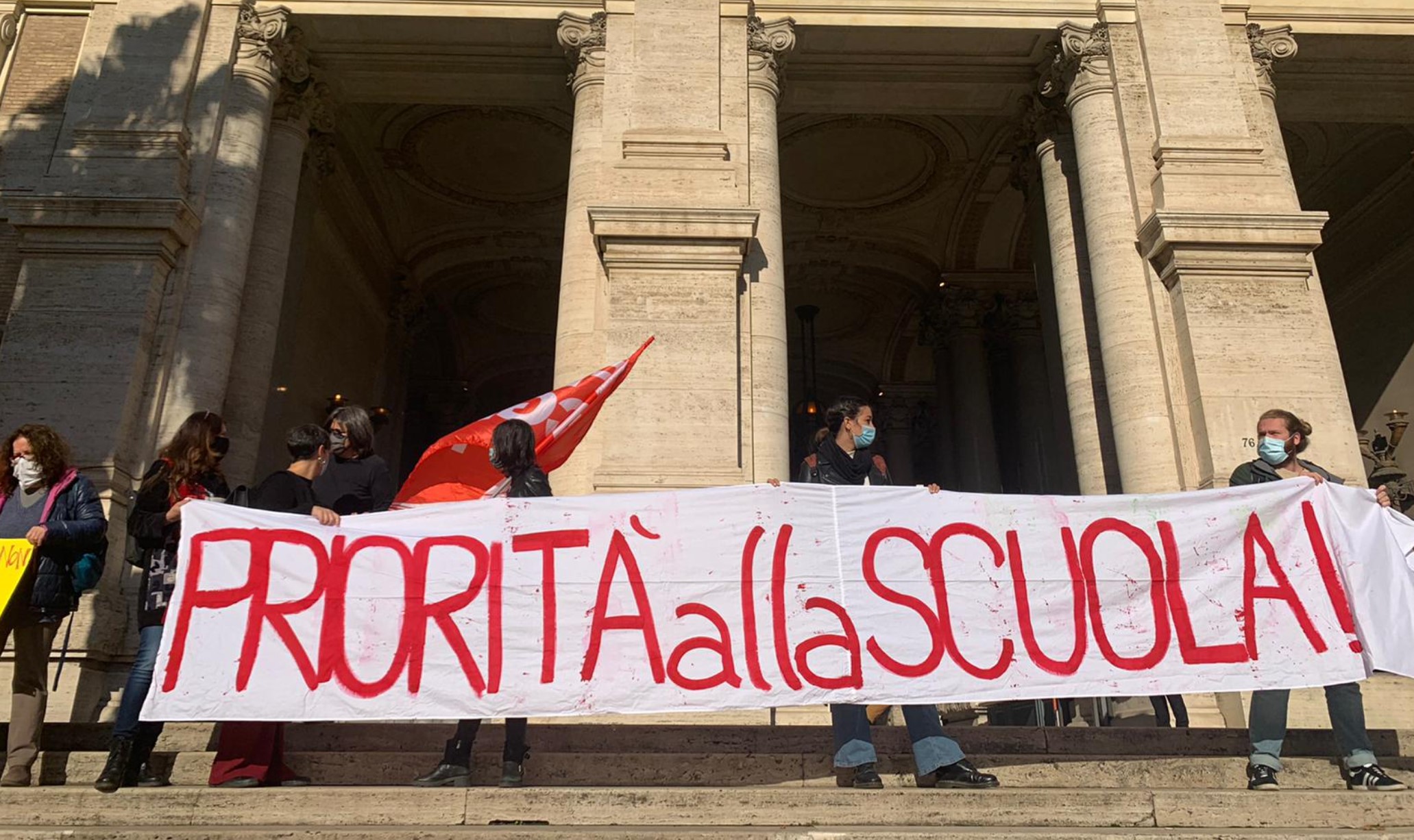 Dpcm e delibera regionale: tutte le perplessità di Flc Cgil, Cisl Scuola, Uil Scuola, Snals e Gilda. A Perugia presidio di protesta Priorità alla scuola, Rete degli Studenti Medi di Perugia, Cgil