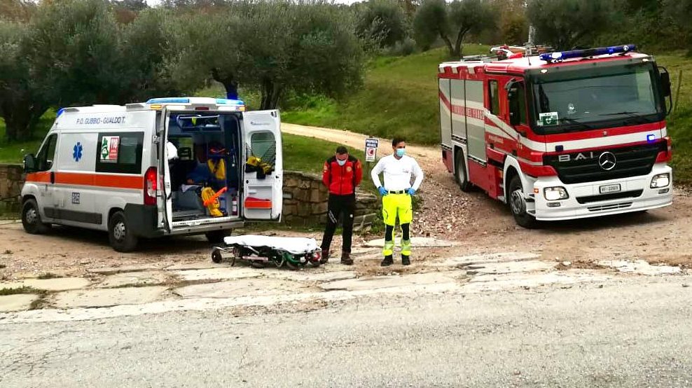 Il proiettile, stando a quanto riferito dai soccorritori, lo ha trafitto a una gamba, la destra. Per aiutarlo sono intervenuti i vigili del fuoco di Gubbio (loro la foto in copertina), che dopo averlo raggiunto, e recuperato, lo hanno affidato a personale del 118 per ricevere le cure del caso.