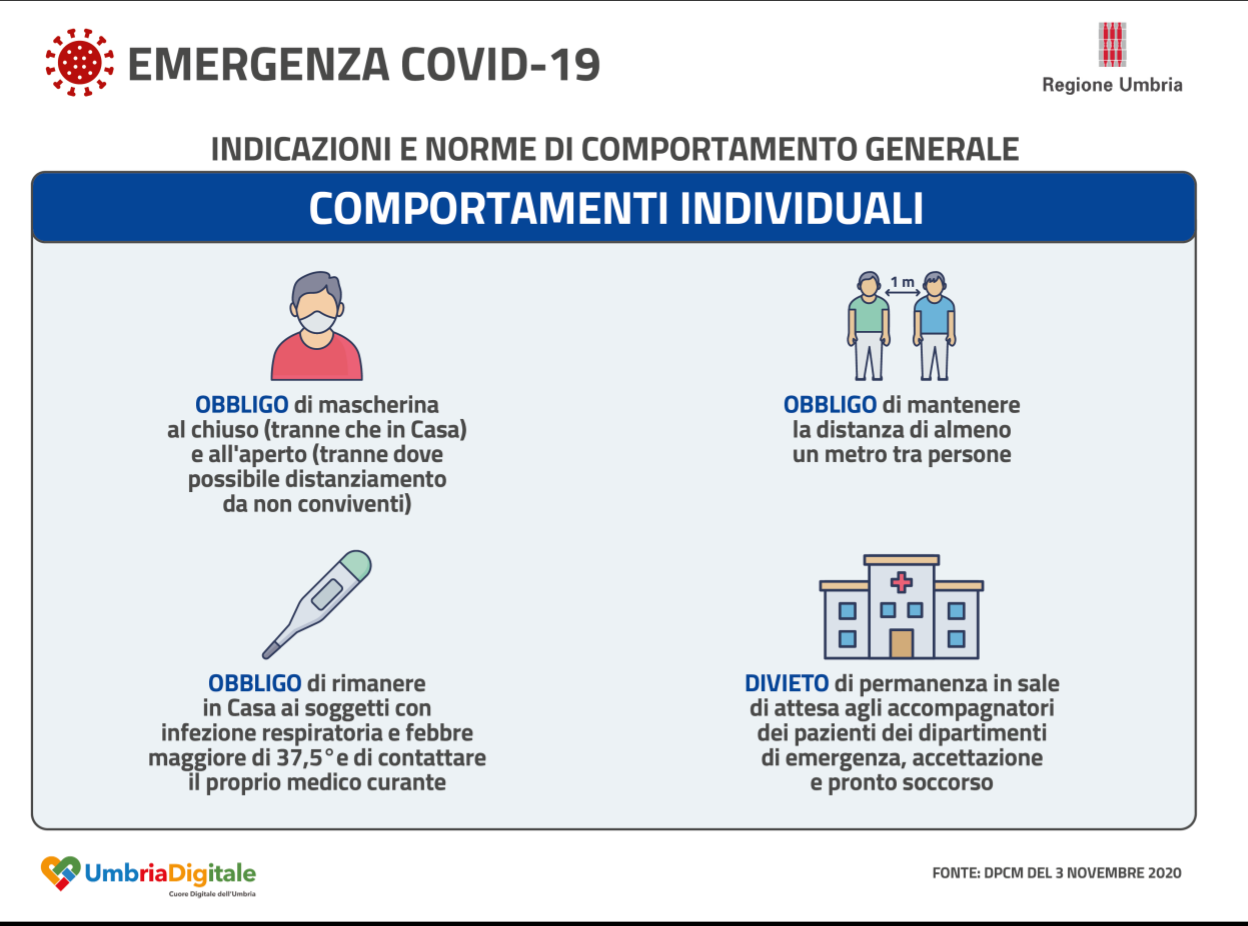 Covid19: norme, comportamenti, best practice: il #vademecum della #Regione 14 Novembre 2020 Facebook WhatsApp Twitter Pinterest LinkedIn Reddit L’infografica Fai clic per accedere a Combinato-DPCMOrdinanza-Ministro-e-Ordinanza-del-PGR.pdf Share on Facebook (Si apre in una nuova finestra) Facebook Share on WhatsApp (Si apre in una nuova finestra) WhatsApp Share on Instagram (Si apre in una nuova finestra) Instagram Umbria See more Previous article Turismo: make-up di tutta la segnaletica a Città della Pieve Next article App Immuni, la campagna anche al supermercato