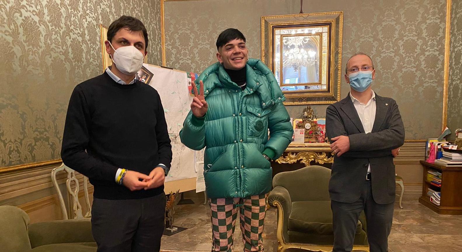 PERUGIA – Blind è stato ricevuto a Palazzo dei Priori dal sindaco Andrea Romizi, dopo che, lo scorso 10 dicembre, il ventenne rapper perugino ha guadagnato il terzo posto della finale di X Factor 2020, aggiudicandosi il Disco d’oro per il singolo Cuore Nero.