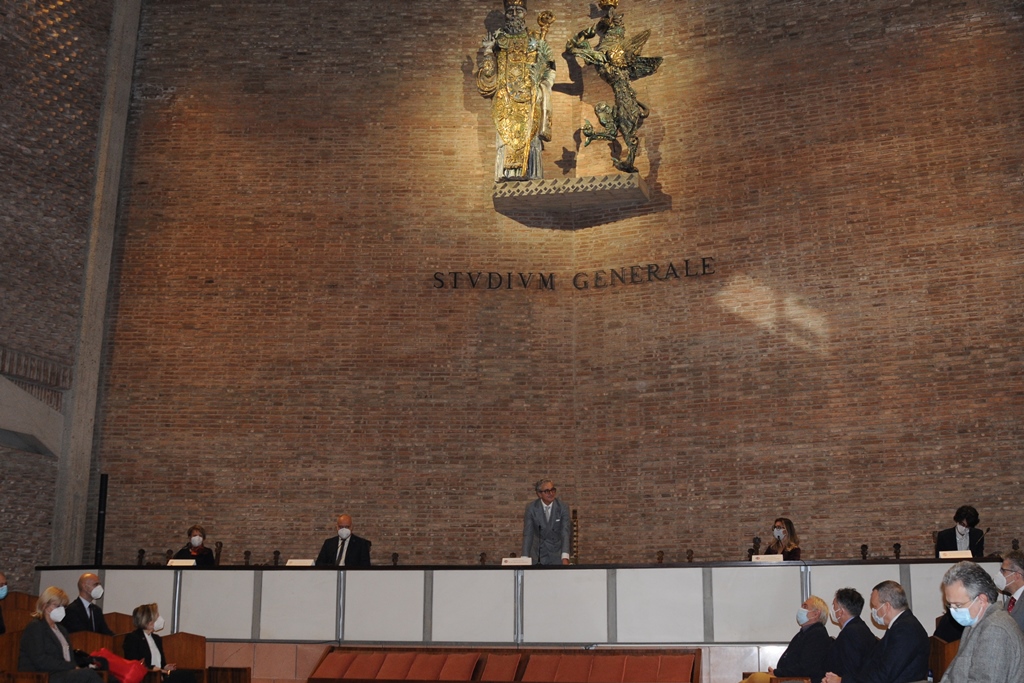 Il magnifico ha poi salutato il direttore generale uscente, la dottoressa Tiziana Bonaceto, per l’importante lavoro svolto, e dato il benvenuto sia al nuovo dg Anna Vivolo, esprimendo la certezza che, grazie al suo lavoro «darà un grande impulso a molte delle attività che fanno parte dell’agenda di questo nostro mandato e della governance», sia al nuovo garante d’ateneo, Fausto Cardella, il quale svolgerà ruolo delicato e importante, nell’ambito di un percorso complessivo caratterizzato da trasparenza e volontà di semplificazione dei processi. Il rettore ha poi evidenziato con orgoglio come l’Ateneo sia stato in grado, nonostante la pandemia, di tracciare nuovi cammini: in primo luogo con l’unificazione dei dipartimenti dell’area medica, grazie alla quale è stato possibile incrementare il numero degli studenti dei corsi di laurea in Medicina e degli specializzandi, e affermare un rinnovato senso di comunità e di appartenenza. «Ringrazio le colleghe e i colleghi dell’area medica per questo straordinario risultato, concluso con la nomina del nuovo direttore, il professore Nicola Talesa, al quale facciamo i nostri migliori auguri».