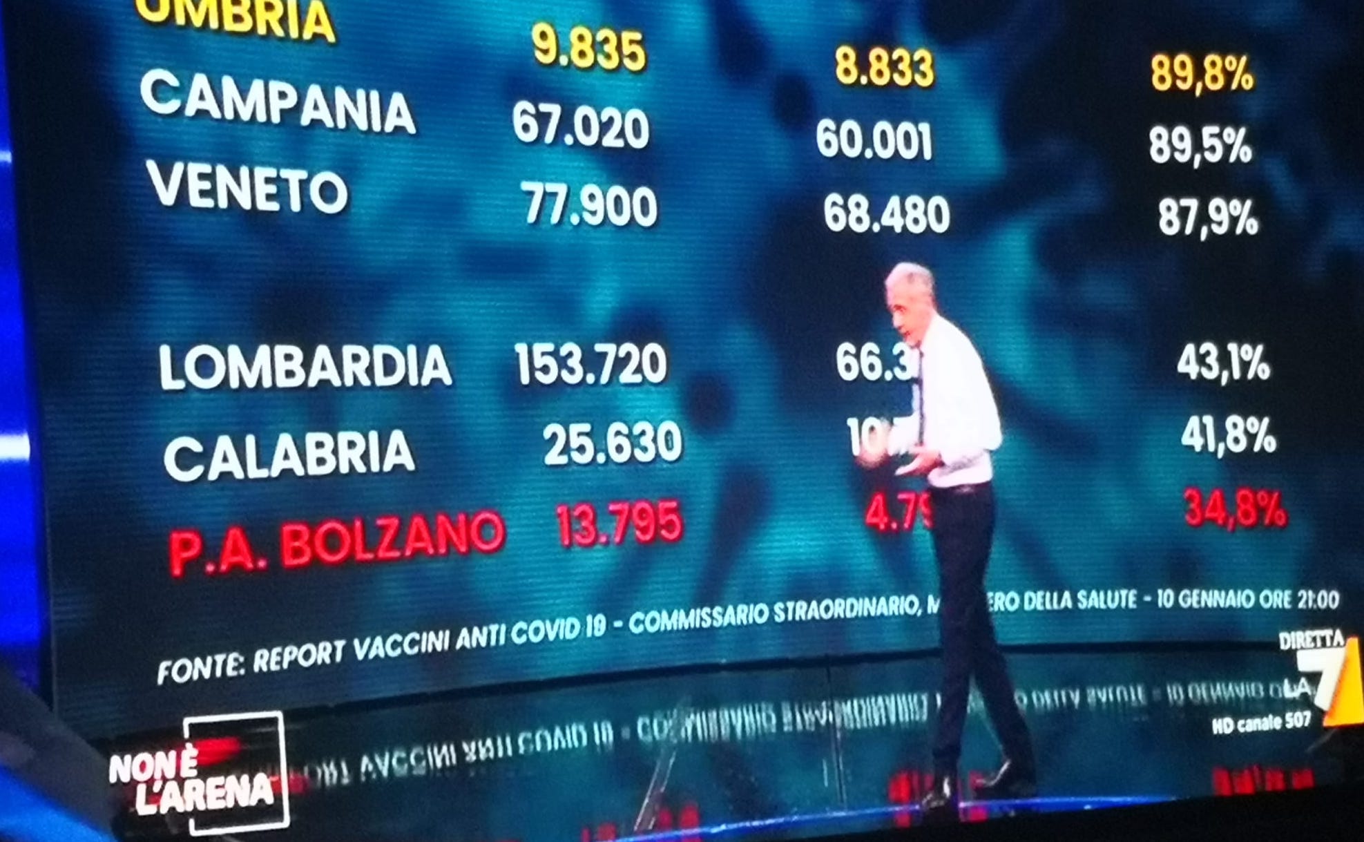 PERUGIA – L’Umbria a sorpresa, dopo una partenza incerta, è la prima Regione in Italia per la somministrazione delle dosi di vaccino. Con l’89.8% ha superato la Campania, il cui governatore De Luca aveva pomposamente annunciato di aver esaurito tutte le dosi (non era vero evidentemente).