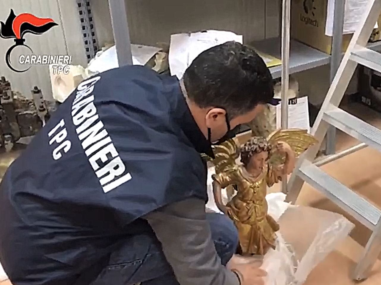 Indagine della Procura della Repubblica di Terni. Le due statue di angeli in legno dorato sono state rubate a Mantova nel 2001. Il video