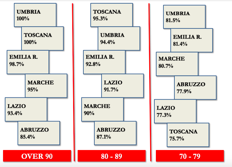 Va sottolineato come i primati umbri in certe categorie di età fanno riferimento anche alla grande attenzione che c’è stata in Umbria per gli estremamente vulnerabili e relativi cargiver, mentre parlano da soli gli ottimi risultati raggiunti con ottantenni e novantenni, che pure in Umbria sono oltre 91mila, quindi percentualmente una cifra molto impegnativa e per i quali viene considerato molto utile (come per i sanitari) operare anche con la seconda dose in tempi brevi.