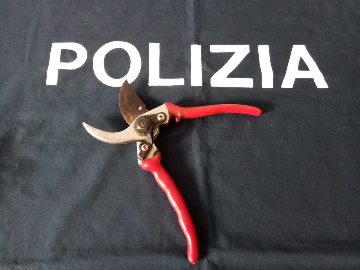 Non volendo dare spiegazioni del suo comportamento e non avendo documenti da esibire per la sua identificazione è stato perquisito e gli sono state trovate delle forbici da potatura. Condotto in Questura per l’identificazione a mezzo dei rilievi foto-dattiloscopici, è risultato un cittadino tunisino del ’95 con numerosi precedenti per reati contro il patrimonio, contro la persona e in materia di stupefacenti. Considerata la mancanza di giustificazione per il possesso dell’arnese veniva denunciato per possesso di oggetti atti allo scasso e le forbici debitamente sequestrate.