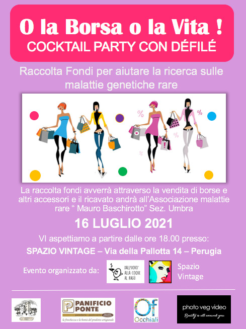 PERUGIA – Si chiama “O la borsa o la vita” l’evento che unisce moda e solidarietà. O, per meglio dire, un cocktail party con défilé, in programma per il 16 luglio, per sostenere la lotta contro le malattie genetiche rare, fanalino di coda della ricerca scientifica.